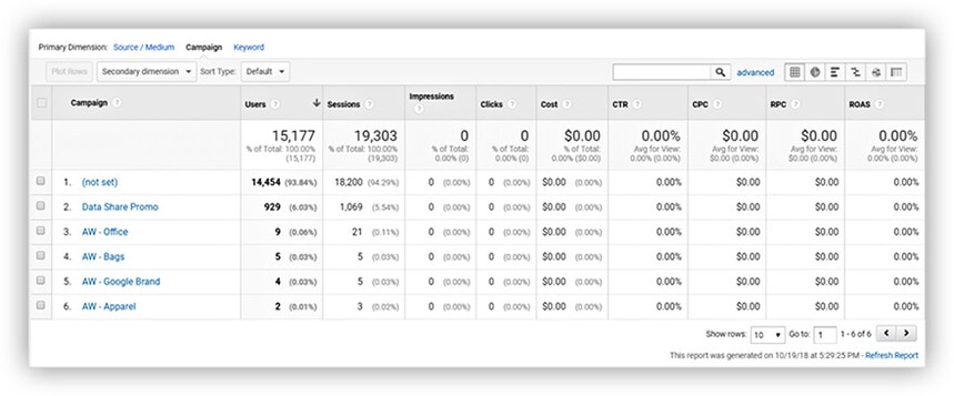 Mais dans cette capture d'écran suivante, vous pouvez voir le même rapport d'analyse des coûts avec des données complètes sur les coûts des différentes campagnes publicitaires.