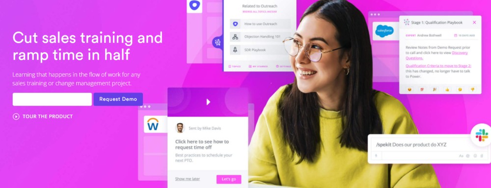 Que vous soyez une petite entreprise ou une entreprise, Spekit peut vous aider à adopter la transformation numérique. Cela réduira les formations commerciales et vos projets de conduite du changement. Des équipes de toutes tailles, telles que PagerDuty, Outreach, Chargebee, etc., utilisent Spekit pour faciliter la vie de leurs employés.