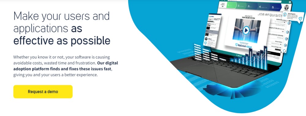 Rendez vos applications et vos utilisateurs plus efficaces avec AppLearn. Cela vous évitera des frustrations, des dépenses et des pertes de temps inutiles ; il peut trouver les problèmes et les résoudre plus rapidement pour offrir à vos utilisateurs une expérience améliorée.