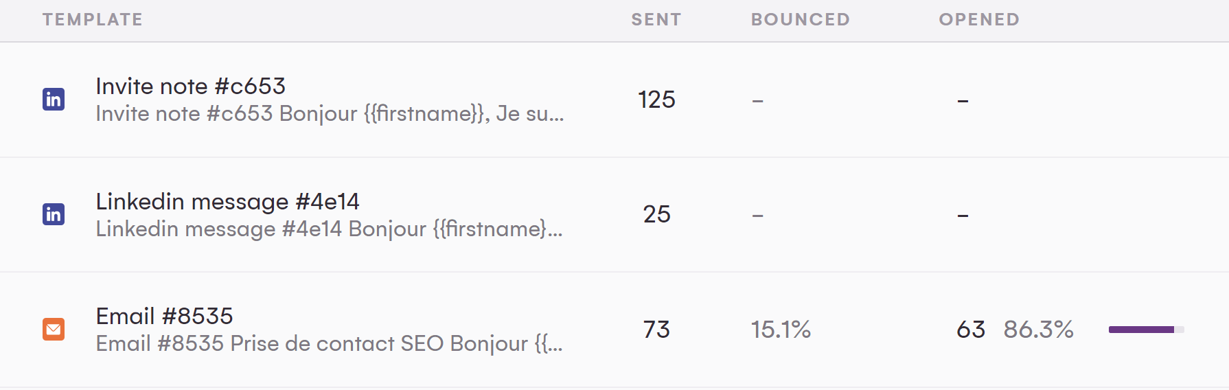 - Fonctionnalités de délivrabilité de votre outil de campagne préféré : si vous utilisez une solution de marketing ou de vente, certaines d'entre elles incluent des fonctionnalités de reporting en direct et affichent des données telles que le taux d'ouverture des e-mails et/ou la délivrabilité. Si vous utilisez LaGrowthMachine, vous obtiendrez toutes ces informations très détaillées.