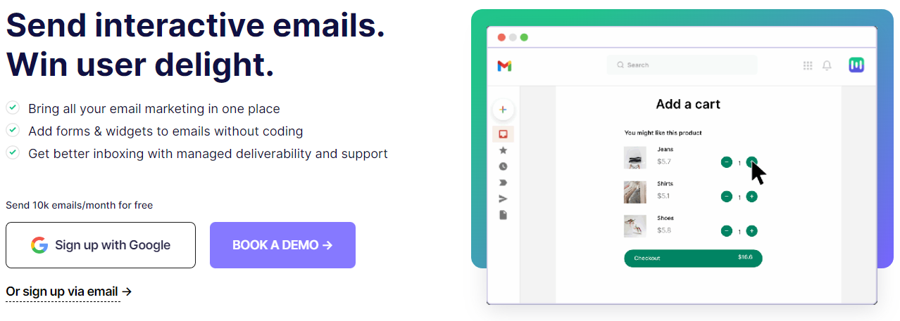 Mailmodo fait des e-mails un délice avec ses éléments interactifs, garantissant que vos campagnes marketing n'échouent pas.