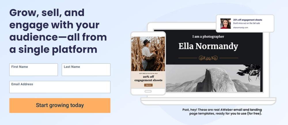 AWeber vous offre une plate-forme sur laquelle vous pouvez facilement interagir avec vos clients par e-mail. Vous bénéficiez de marketing par e-mail, de modèles de page de destination, d'automatisation des e-mails, de pages de commerce électronique et de notifications push Web. Utilisez autant de solutions que vous le souhaitez pour un succès plus rapide et atteignez vos objectifs rapidement.