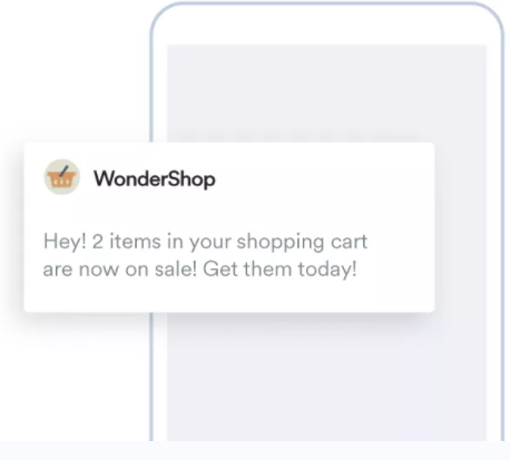 La notification push personnalisée de WonderShop, comme celle illustrée dans l'image ci-dessous, est personnalisée et pertinente et plus susceptible d'engager ses utilisateurs.