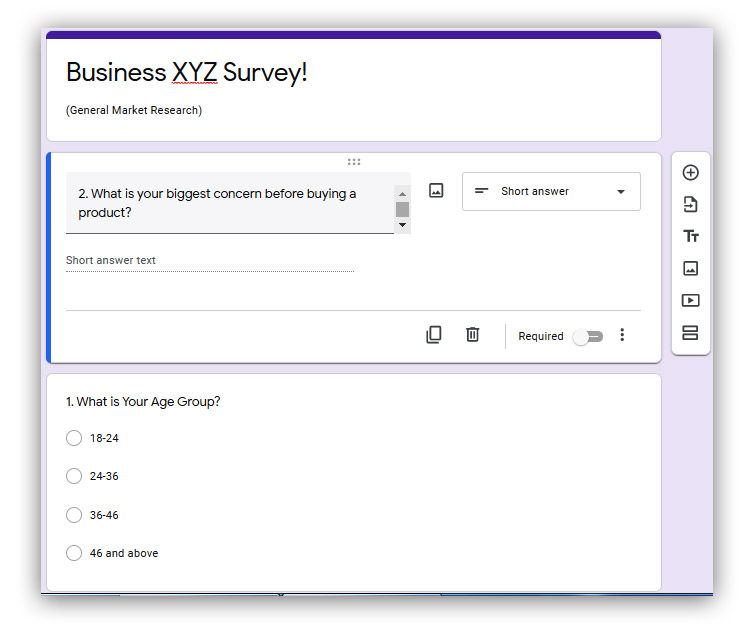 Ils constituent l'un des moyens simples et peu coûteux de recueillir des informations et des idées qualitatives sur les acheteurs. Ce qui vous aidera à créer des produits et des expériences centrés sur l'utilisateur. Vous pouvez facilement créer de telles enquêtes personnalisées via Google Forms et les envoyer à des prospects via des e-mails et d'autres supports numériques.