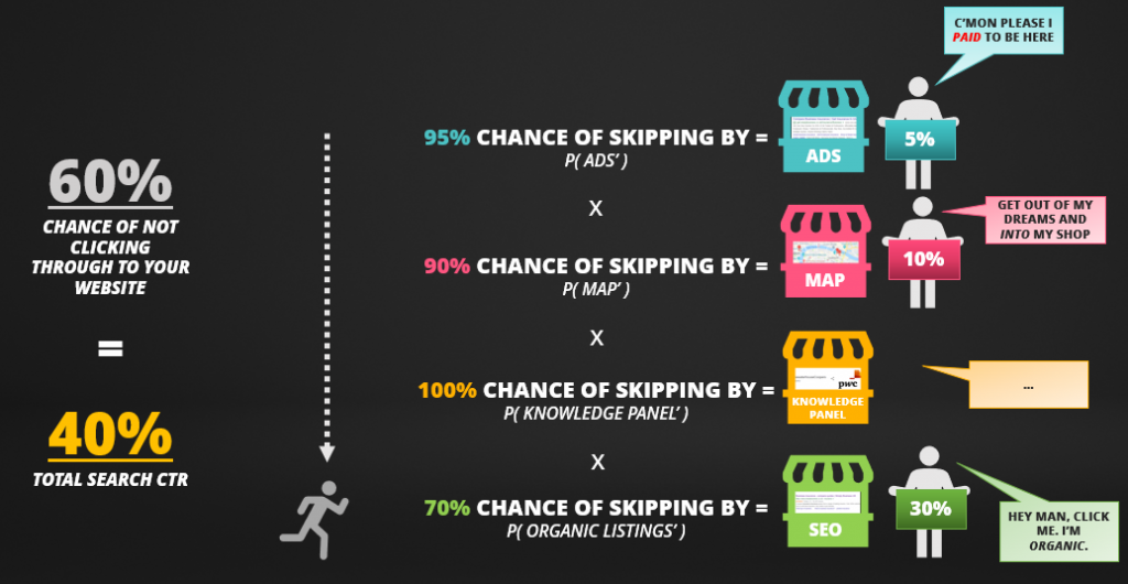 Nous sommes tous conscients qu’il se passe beaucoup plus de choses dans le SERP. Vous pouvez vous classer numéro un de manière organique tout en restant obscurci en dessous de la ligne de flottaison, en particulier sur les appareils mobiles.