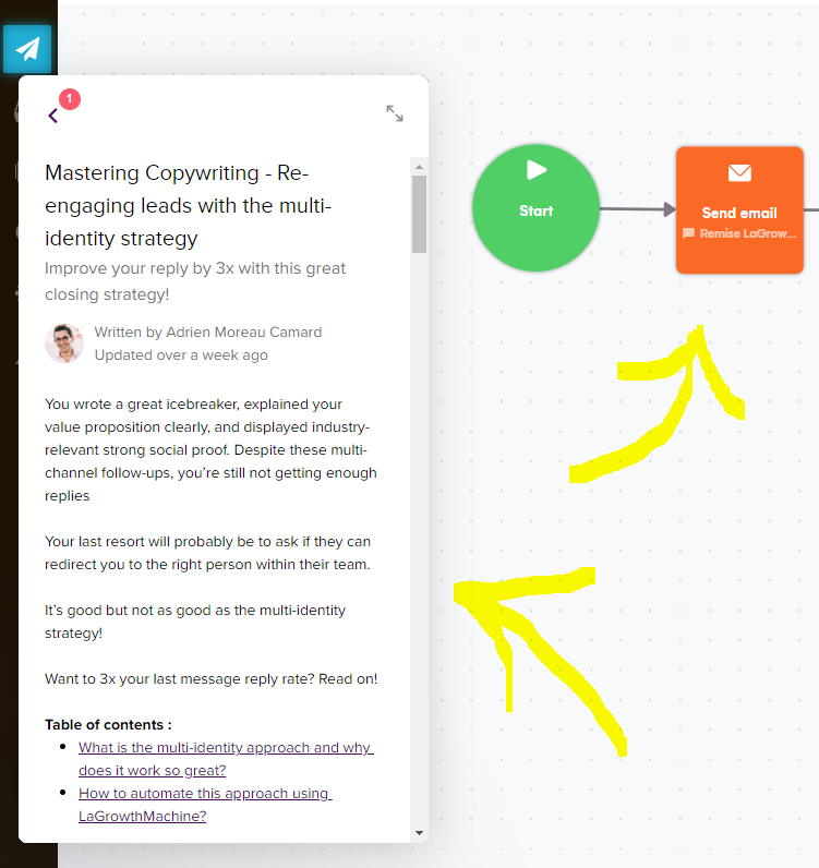 - Soyez bref et concis : les e-mails de vente doivent être courts et précis. Allez droit au but et n'incluez aucune information inutile. Le but est d'intéresser le destinataire, pas de l'ennuyer ! Si vous utilisez LaGrowthMachine, notre support vous accompagne dans la rédaction de vos messages, pour en tirer le meilleur parti !