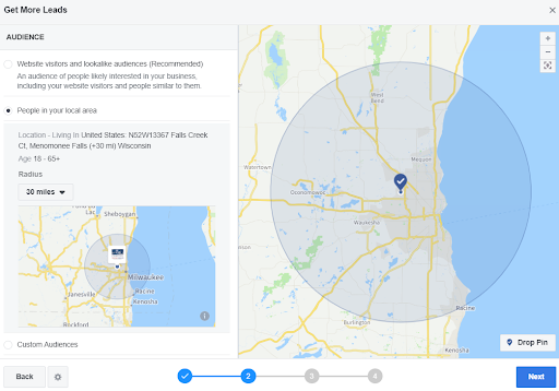 Un moyen simple d'atteindre les clients locaux consiste à afficher vos annonces dans des zones sélectionnées à proximité de votre entreprise. Les plateformes sociales offrent des fonctionnalités de ciblage supplémentaires pour vous aider à cibler les clients locaux en fonction d'autres données démographiques ou d'intérêts similaires aux services que vous proposez. Le fait de restreindre l'audience à laquelle vos annonces seront diffusées vous permettra d'atteindre le potentiel client le plus élevé aux coûts les plus bas.