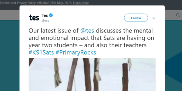 Par exemple, TES est une organisation de ressources pédagogiques et ils semblent être actifs sur Twitter et sont devenus un leader d'opinion pour un de mes clients récents. Ils ont de nombreux adeptes et leurs tweets suscitent un engagement décent. Tout n'est pas un succès, mais ils s'efforcent de produire un contenu opportun, intéressant et pertinent.