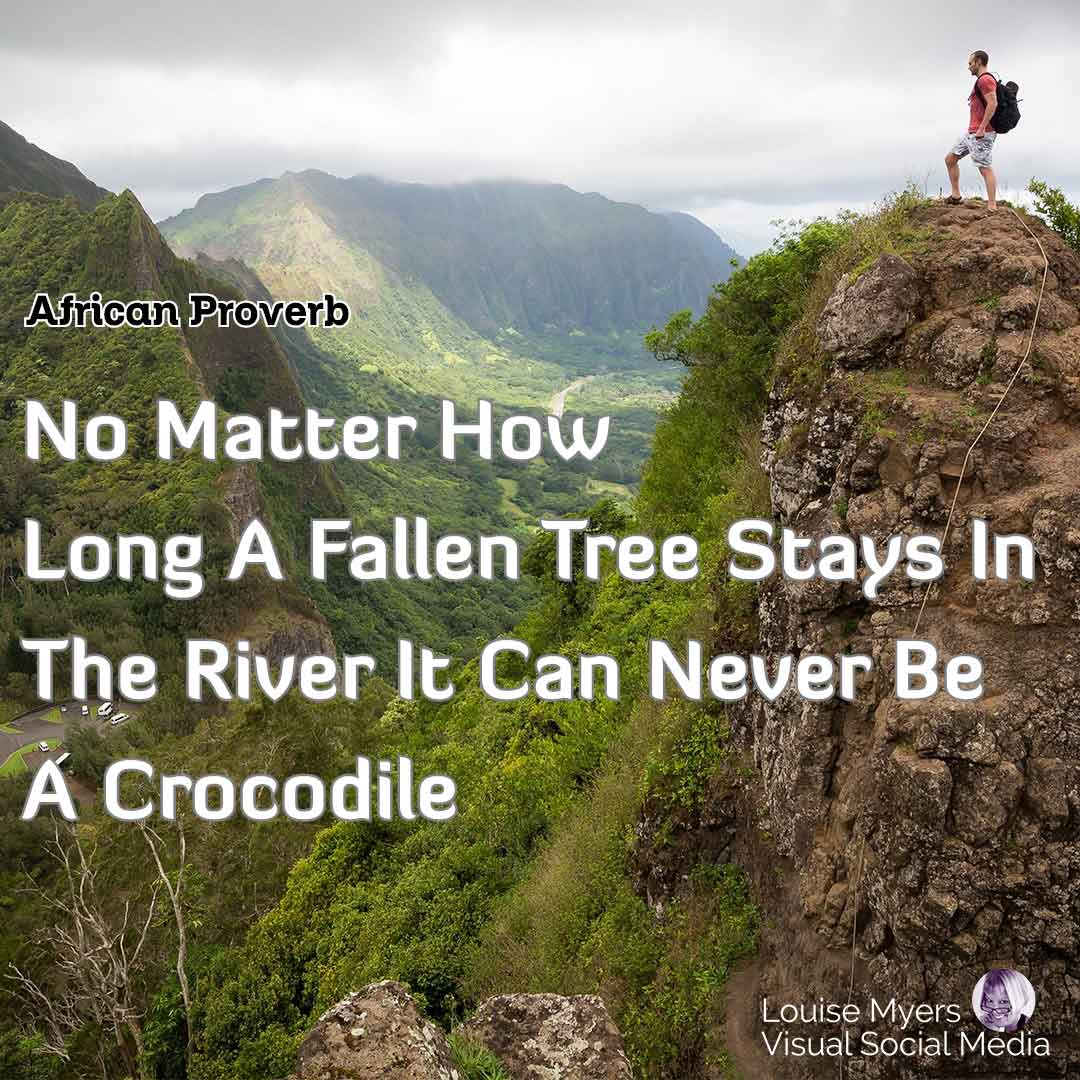 Peu importe combien de temps un arbre tombé reste dans la rivière, il ne peut jamais être un crocodile.