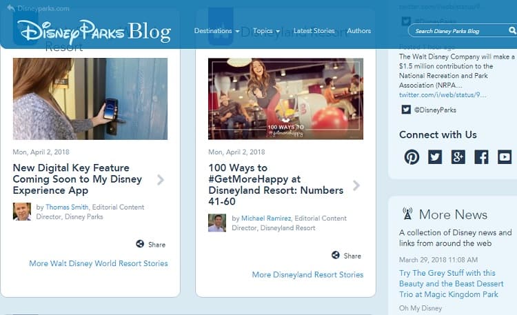 Faire un voyage dans l'un des parcs Disney n'est pas des vacances bon marché. C'est tout un investissement, donc naturellement, les gens veulent vérifier ce qui est disponible avant de se lancer. Disney fait du bon travail en fournissant de nombreuses informations détaillées sur ses parcs sur son blog Disney. Une fois qu'un utilisateur a lu des articles sur des manèges spécifiques, des fonctionnalités dans des centres de villégiature et des conseils d'initiés, il est plus susceptible d'acheter un forfait vacances.