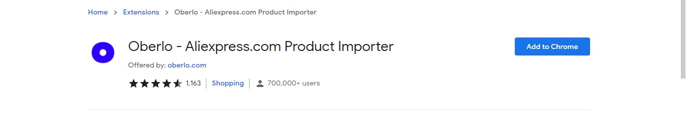 Di halaman Toko Web Chrome, cari Oberlo. Setelah Anda menemukannya, buka dan kemudian klik tombol Tambahkan ke Chrome seperti:
