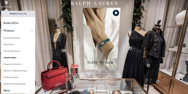 Ralph Lauren telah melakukan pekerjaan yang hebat dalam hal ini, di mana penonton dapat membenamkan diri ke dalam toko yang tampak brilian ini dan melihat berbagai ruangan atau lemari terbuka di mana orang dapat menjelajahi dan melihat produk secara mendetail. Semua disertai dengan deskripsi produk.