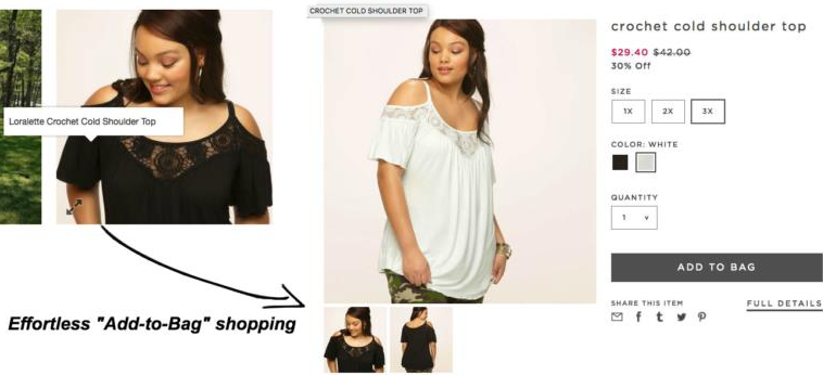 Sebagai contoh lihat H&M yang telah menyematkan ikon belanja ke gambar mereka. Memberi orang pilihan untuk mengklik dan membeli produk dengan mudah.