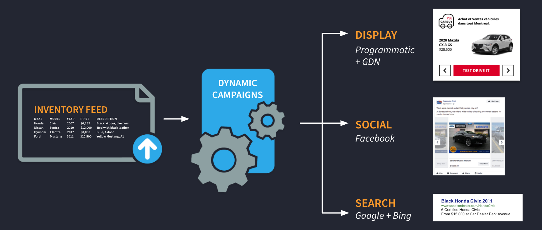 Tentu saja, semuanya dimulai dengan mendapatkan umpan inventaris dealer Anda. Itu adalah dasar untuk kampanye Anda. Keakuratan dan ketepatan waktu umpan inventaris ini sangat penting untuk kesuksesan Anda!