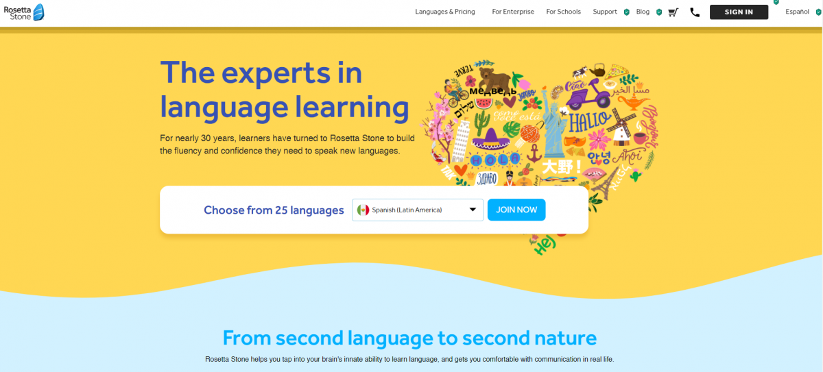Rosetta Stone pertama kali muncul pada tahun 1992 ketika sebagian besar platform lain dalam daftar ini bahkan tidak dalam pembuatan. Pengalaman tiga dekade ini memungkinkan Rosetta Stone menciptakan kurikulum pembelajaran bahasa yang andal, stabil, dan dapat diprediksi. Anda dapat menemukan banyak masalah berbasis penalaran deduktif di Rosetta Stone yang membantu meningkatkan keterampilan berbicara, mendengarkan, dan membaca Anda.