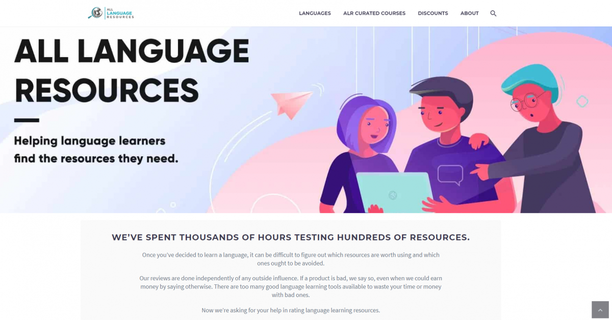 Seperti namanya, ALR (All Language Resources) adalah kumpulan sumber daya untuk semua bahasa utama. Situs web ini relatif mudah, dengan banyak sumber daya bahasa dan ulasan tentang aplikasi populer untuk membantu Anda menemukan solusi bahasa yang ideal.