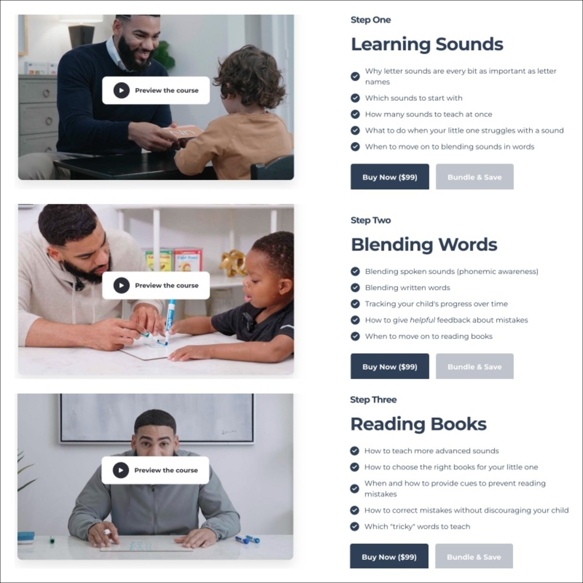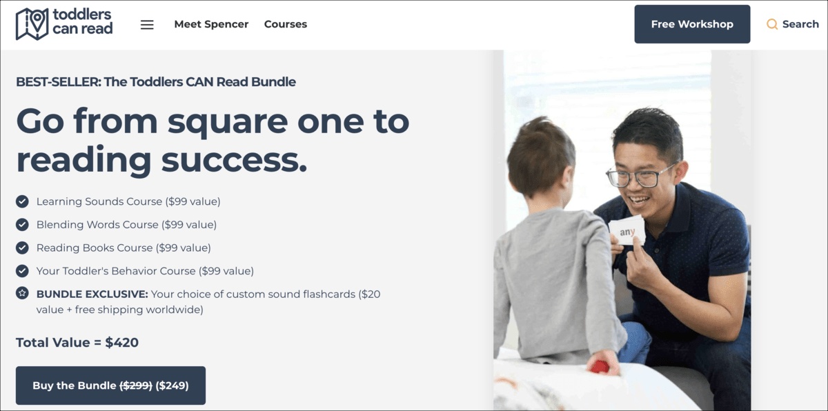 Pengunjung yang berhasil melewati corong Spencer dapat mendaftar ke kurikulum membaca—tiga kursus tersedia secara individual dengan harga $99 per kursus atau didiskon sebagai paket seharga $249 .