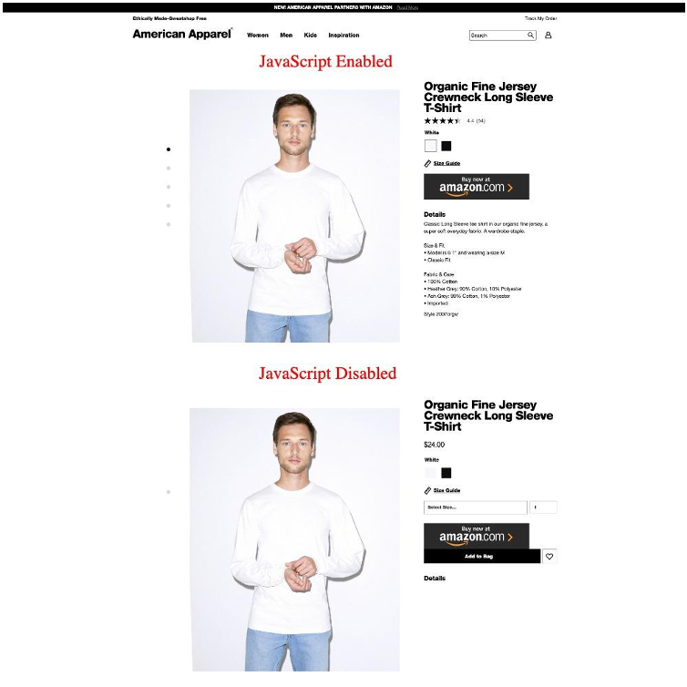 - Matikan JavaScript di browser Anda dan tinjau secara manual jenis halaman utama. Perhatikan elemen konten global mana yang bergantung pada JavaScript untuk dimuat. Anda juga dapat menggunakan ekstensi View Rendered Source untuk membandingkan kode sumber asli dengan DOM.