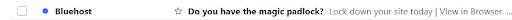 Dan terakhir, contoh di bawah ini mengajukan pertanyaan yang menarik. “Apa,” Anda mungkin berpikir, “gembok ajaib itu?” Kemudian, teks pratinjau mengklarifikasi berbagai hal dengan mengatakan "Kunci situs Anda hari ini". Jadi sekarang Anda tahu bahwa yang harus Anda lakukan hanyalah membuka email ini untuk mempelajari cara mendapatkan keamanan yang lebih baik untuk situs web Anda.