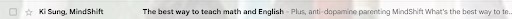 Kemudian, di teks pratinjau, kita melihat, “Plus, anti-dopamin parenting…” Ini memberi tahu kita bahwa email tersebut akan memiliki banyak subjek, salah satunya terdapat di baris subjek. Kemudian, teks pratinjau memberi pembaca topik lain dan pengait lain untuk membuat mereka membuka email (apa sih "pengasuhan anti-dopamin" itu?).