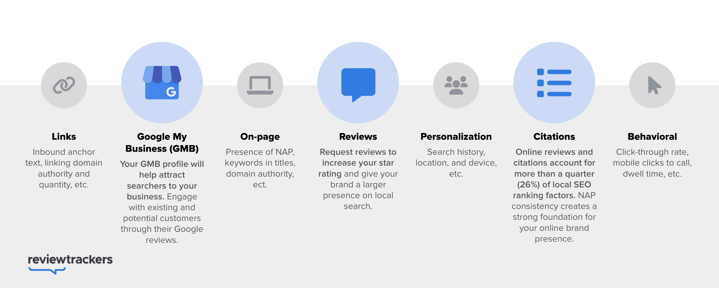 Mari selami lebih dalam faktor peringkat SEO lokal tertentu yang seharusnya membentuk taktik dan strategi Anda. Faktor-faktor seperti tautan, sinyal di halaman, personalisasi, dan sinyal perilaku sangat penting. Namun, kali ini, mari kita lihat lebih dekat tiga faktor penting SEO lokal yang muncul dalam beberapa tahun terakhir.