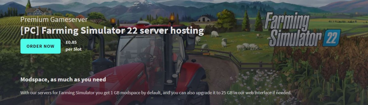 Dapatkan server game premium dari GPORTAL untuk menjadi tuan rumah Farming Simulator dan nikmati ruang mod 1GB secara default. Ini memungkinkan Anda untuk meningkatkan ruang ke 25GB dari antarmuka web kapan pun Anda mau.