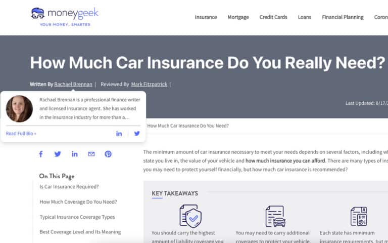 Sebagai penulis keuangan untuk situs keuangan seperti MoneyGeek, Anda akan menerima biografi penulis yang bagus ketika orang mengklik nama Anda (atau mungkin ditampilkan di bagian bawah posting klien).