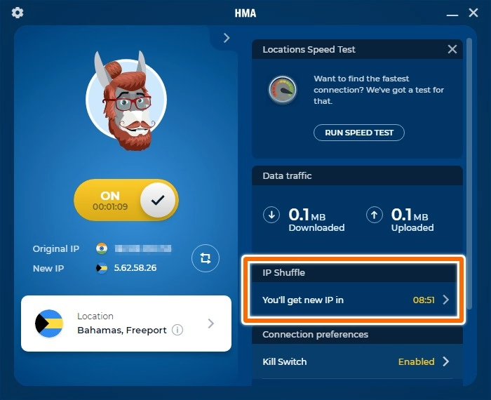 IP Shuffle adalah alat yang digunakan jika Anda perlu mengubah alamat IP Anda – sekali atau secara berkala. Opsi ini berada di bawah Kill Switch di tab Privacy yang baru saja kita lihat di gambar sebelumnya.