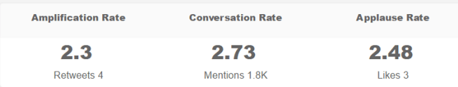 Fitur Analisis Tweet Audiense juga menampilkan statistik keterlibatan Anda dalam bagan, tetapi yang menarik dari fitur ini adalah fitur ini juga menunjukkan tingkat Amplifikasi (jumlah retweet/tweet), Tingkat percakapan (jumlah sebutan/tweet), dan Tingkat tepuk tangan ( jumlah suka/tweet).