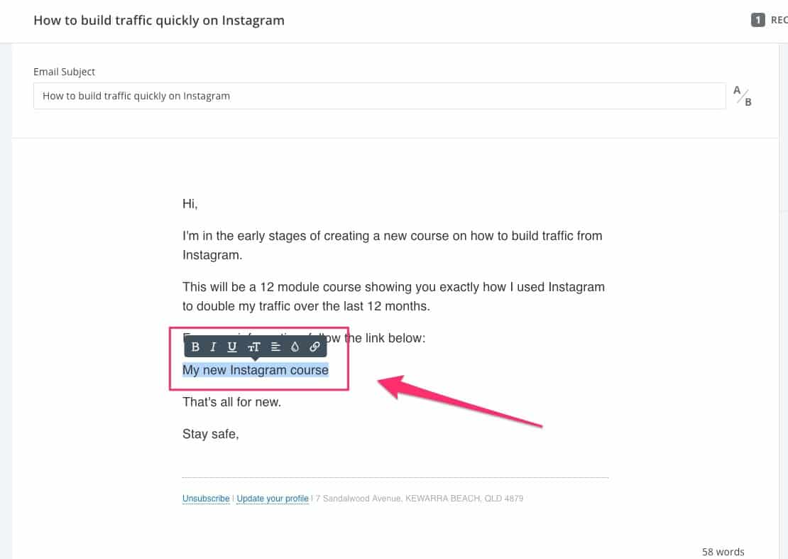 Dan hanya itu – orang yang mengklik tautan itu sekarang akan ditandai sebagai 'Tertarik dengan kursus Instagram baru'.
