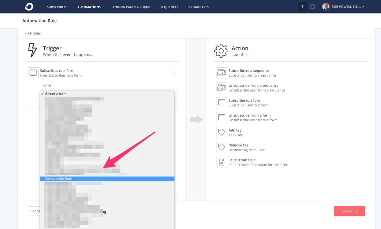 Ini adalah aspek kunci lain tentang cara menggunakan ConvertKit: menghubungkan urutan email Anda ke formulir keikutsertaan.