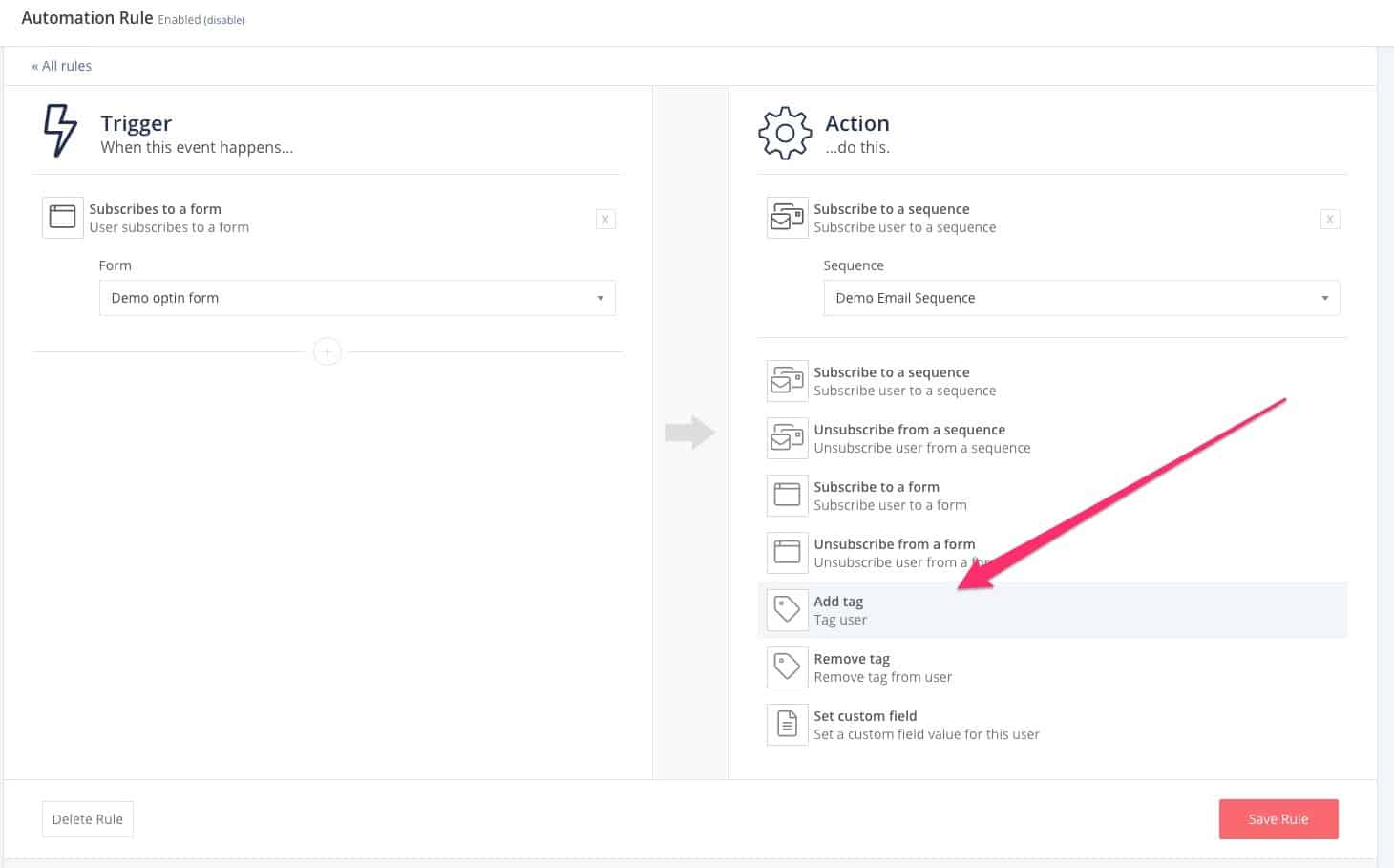 Ada dua cara untuk menghubungkan urutan email Anda ke formulir: menggunakan otomatisasi visual atau membuat aturan.