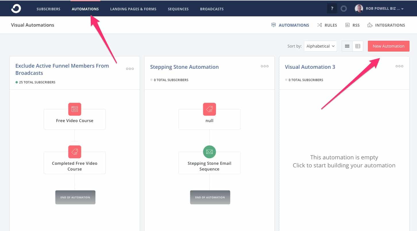Klik Otomatisasi di menu atas dan kemudian 'Otomasi Baru':
