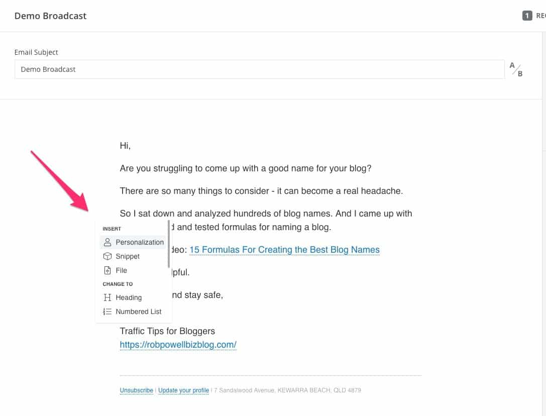 Seseorang yang bergabung dengan daftar saya dari artikel tentang menulis mungkin tidak tertarik dengan informasi tentang SEO.