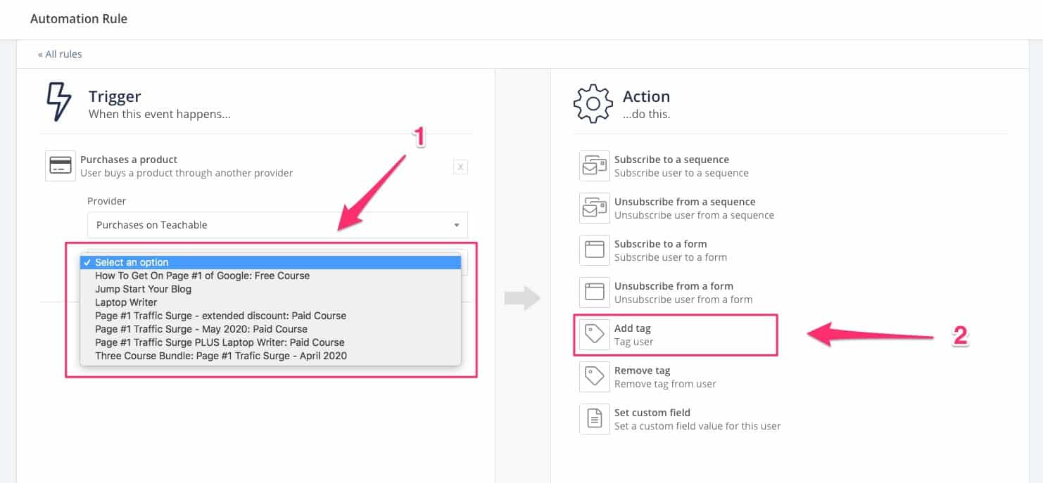 Karena saya telah menghubungkan akun Teachable saya ke ConvertKit, saya tidak dapat memberikan tangkapan layar langkah demi langkah tentang apa yang harus dilakukan.