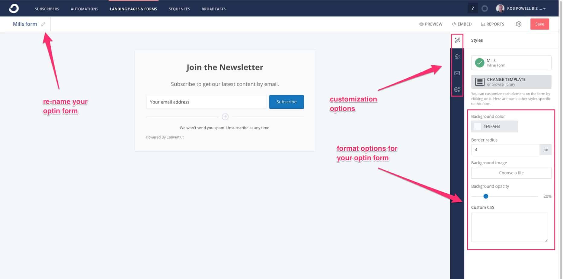 Menyesuaikan Formulir Optin Anda