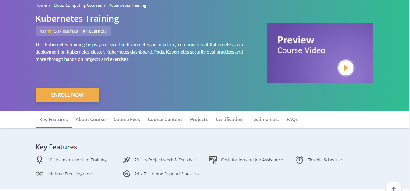 Whizlabs menyediakan lebih dari 8 jam pelatihan online untuk mengajarkan semua yang Anda butuhkan untuk mendapatkan administrator Kubernetes (CKA) bersertifikat. Kursus ini berisi topik-topik penting berikut.