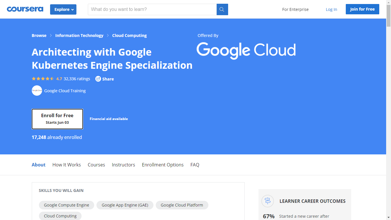 Merancang dengan Spesialisasi Google Kubernetes Engine adalah kursus dari Coursera yang ditawarkan oleh Google Cloud.
