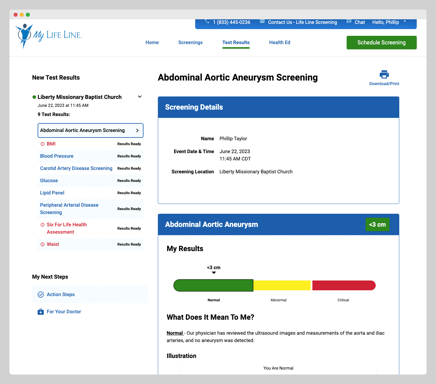 Life Line Screening membuat saya terkesan dengan efisiensi penyampaian pemberitahuan hasil resmi saya. Pada tanggal 28 Juni, hanya enam hari setelah pemeriksaan, saya menerima email berisi rincian hasil tes yang telah saya ikuti.