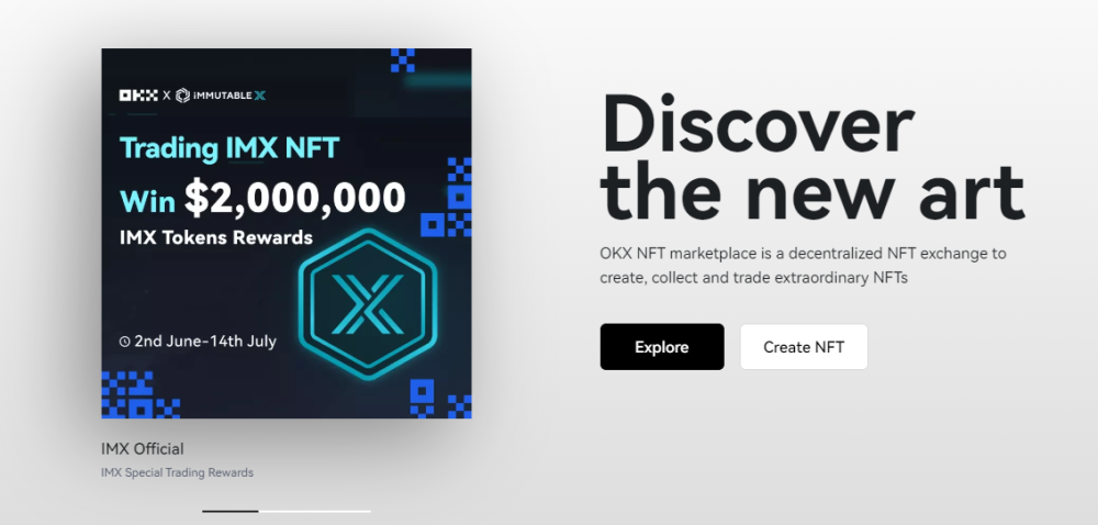 OKX adalah platform pertukaran crypto yang juga berfungsi sebagai pasar NFT. Anda akan menemukan nama-nama top seperti Bored Ape Yacht Club, CryptoPunks, dll., bersama dengan pencipta terkenal lainnya yang menjamin pembelian berkualitas.
