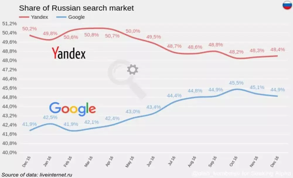 Seperti yang ditunjukkan grafik di atas, Google masih memiliki pijakan yang signifikan di negara ini. Itu berarti Anda perlu membuat keputusan tentang mesin telusur mana yang akan mengoptimalkan konten Anda. Untungnya pengoptimalan untuk Yandex tidak jauh berbeda dengan pengoptimalan untuk Google. Namun, ada beberapa hal yang harus Anda ingat: