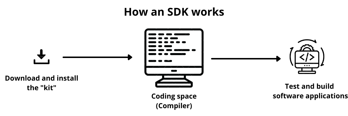 SDK memfasilitasi pembuatan aplikasi atau perangkat lunak baru yang khusus untuk satu bahasa atau platform pemrograman. SDK umumnya memiliki setidaknya satu API untuk berkomunikasi secara eksternal.