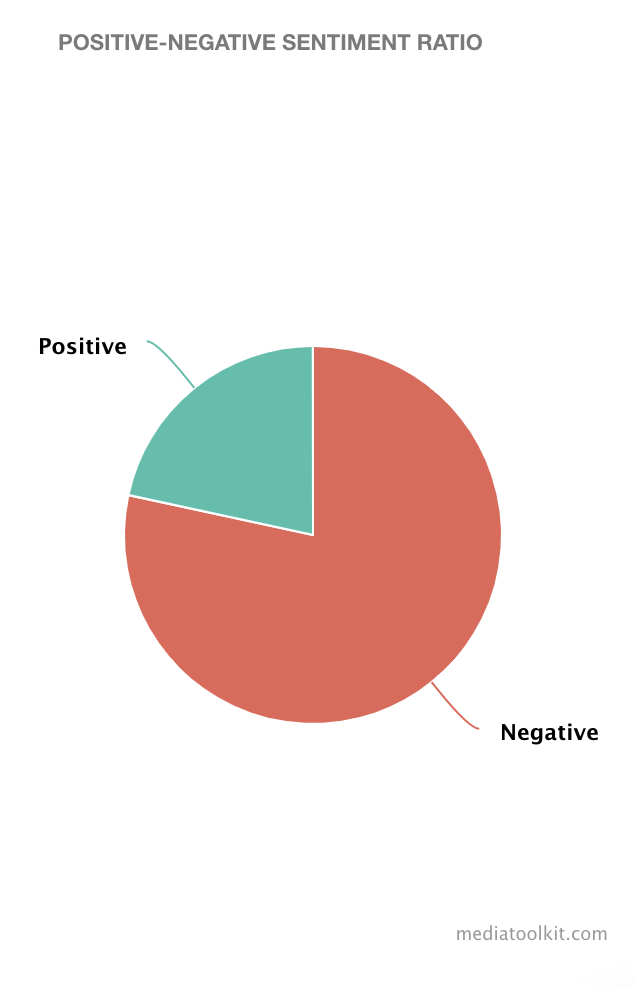 Kami telah berbicara tentang Burger King di atas dan telah menunjukkan kepada Anda satu contoh grafik analisis sentimen. Agar Anda bisa mendapatkan pemahaman yang lebih baik tentang cara kerja laporan analisis sentimen dalam praktiknya, kami telah membuat laporan analisis sentimen yang sepenuhnya dapat disesuaikan dengan bagan yang berbeda menggunakan Mediatoolkit. Ini hanya beberapa bagan khusus yang dapat Anda gunakan dalam analisis Anda dan dapat menambahkan atau mengeditnya sesuai keinginan Anda.