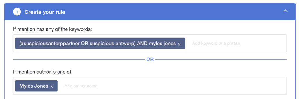 Kali ini, kami mengatur mention untuk partner koleksi Peacekeeper Suspicious Antwerpen: Drew Ray Tanner, Myles Jones, dan Casimere Jollette. Untuk memastikan, misalnya, bahwa setiap penyebutan Myles Jones dalam konteks Antwerp Mencurigakan masuk ke tag Myles Jones, Anda dapat menggunakan Tindakan Otomatis:
