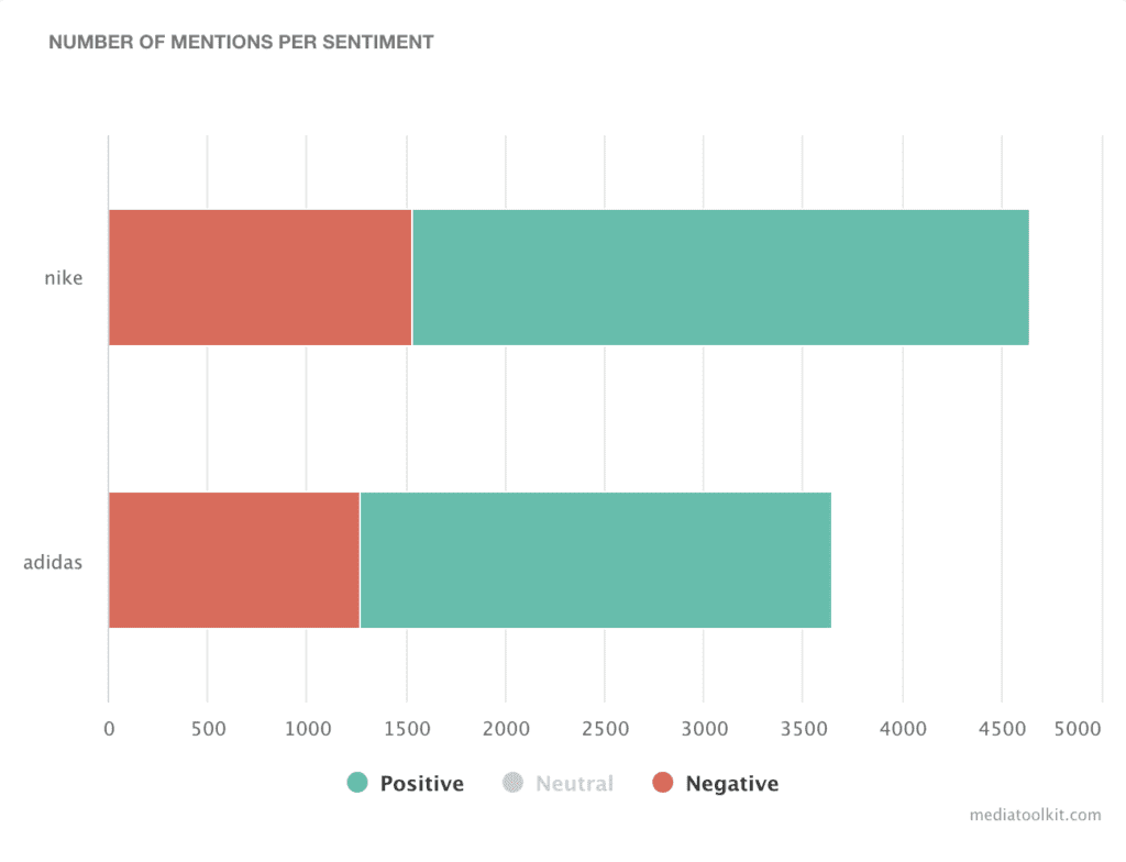 Anda tidak hanya dapat membandingkan jumlah penyebutan merek Anda terhadap pesaing Anda, tetapi Anda juga dapat melihat apakah sentimen yang berlaku positif atau negatif. Jika Anda melihat pesaing Anda memiliki lebih banyak sebutan positif daripada Anda, Anda dapat memeriksanya. Lihat bagaimana strategi media sosial mereka dibandingkan dengan Anda dan apa yang dapat Anda lakukan untuk meningkatkan strategi Anda sendiri.