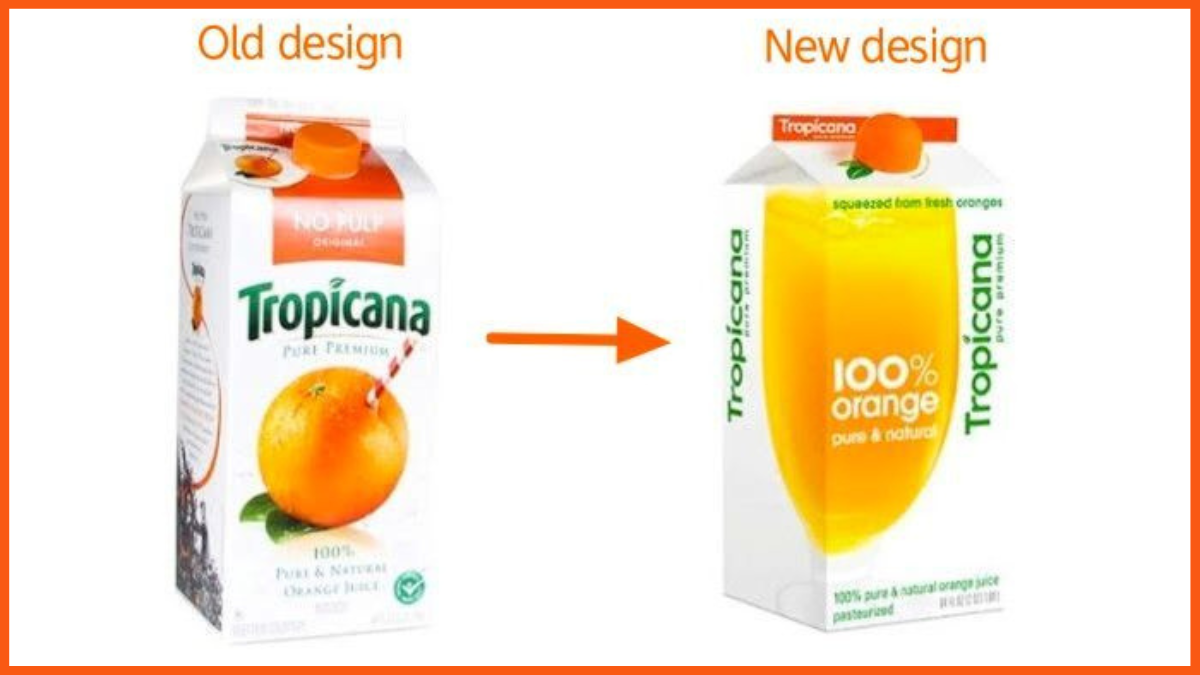 Dalam upaya mengubah desain produk yang dapat menyampaikan pesan bahwa produk ini mengandung 100% jus jeruk alami, mereka mengubah identitas merek. Bencana terjadi tepat setelah peluncuran desain produk baru. Media sosial dibanjiri postingan dan artikel yang mengkritik logo baru dan desain paket secara keseluruhan. Orang dulu berpendapat bahwa desain lama dengan oranye dan jerami di dalamnya, memberi mereka rasa segar.