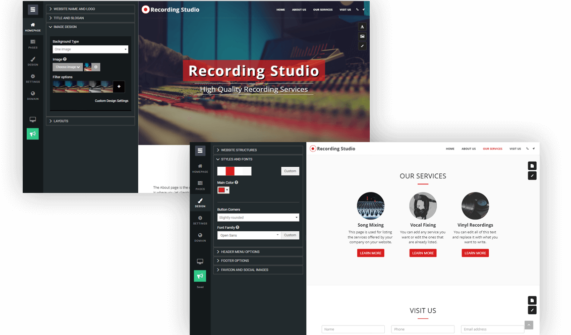 Langkah pertama adalah menyelesaikan desain situs Anda, yang dapat Anda lakukan menggunakan alat intuitif seret dan lepas dengan banyak templat untuk dipilih. Anda harus mengandalkan insting Anda untuk memilih template yang lebih mencerminkan semangat situs Anda.