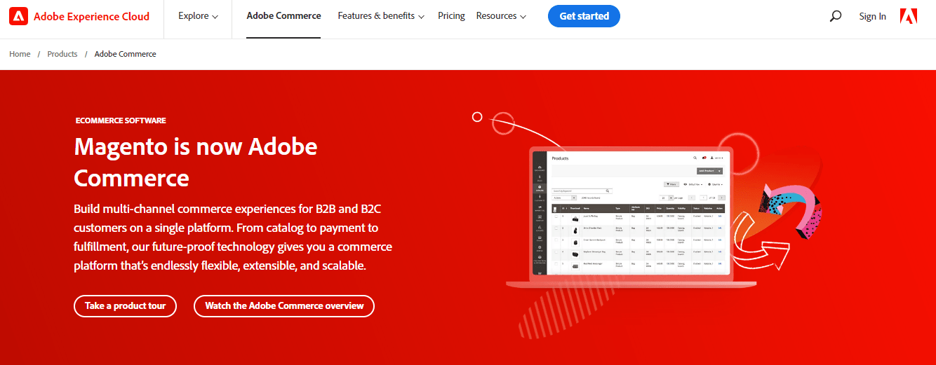 Magento, ora noto come Adobe Commerce, è un'ottima piattaforma di e-commerce per il dropshipping. Può aiutarti a far crescere la tua attività di dropshipping oltre le tue aspettative. È facile da personalizzare con molte caratteristiche vantaggiose.