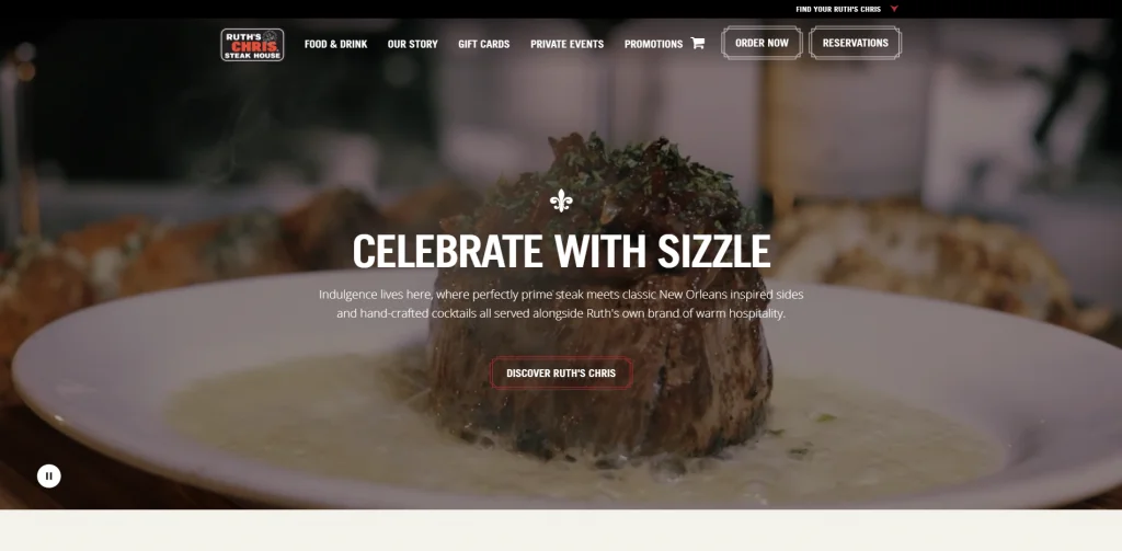 La Chris Steak house di Ruth fa un ottimo lavoro mostrando la storia dietro l'attività e come e quando sono iniziate le cose. C'è una cronologia che aiuta a organizzare e dare una visione di quando sono accaduti gli eventi. Inoltre, ci sono molte foto del proprietario e dell'aspetto del ristorante. Queste immagini aiutano davvero le persone a comprendere meglio l'azienda. Nella parte inferiore della home page, ci sono collegamenti ai social media e altre informazioni di contatto.